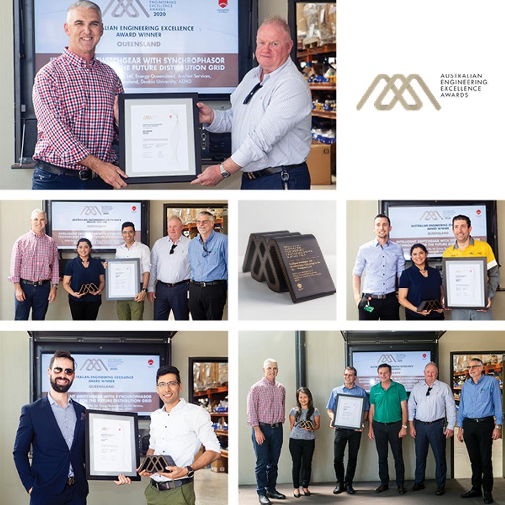 Following their win in the AEEA Awards, NOJA Power were visited by EA Queensland President Colin Mitchell and EA Queensland General Manager Stacey Rawlings to award the trophy, joined by project partners, stakeholders and the NOJA Power team.